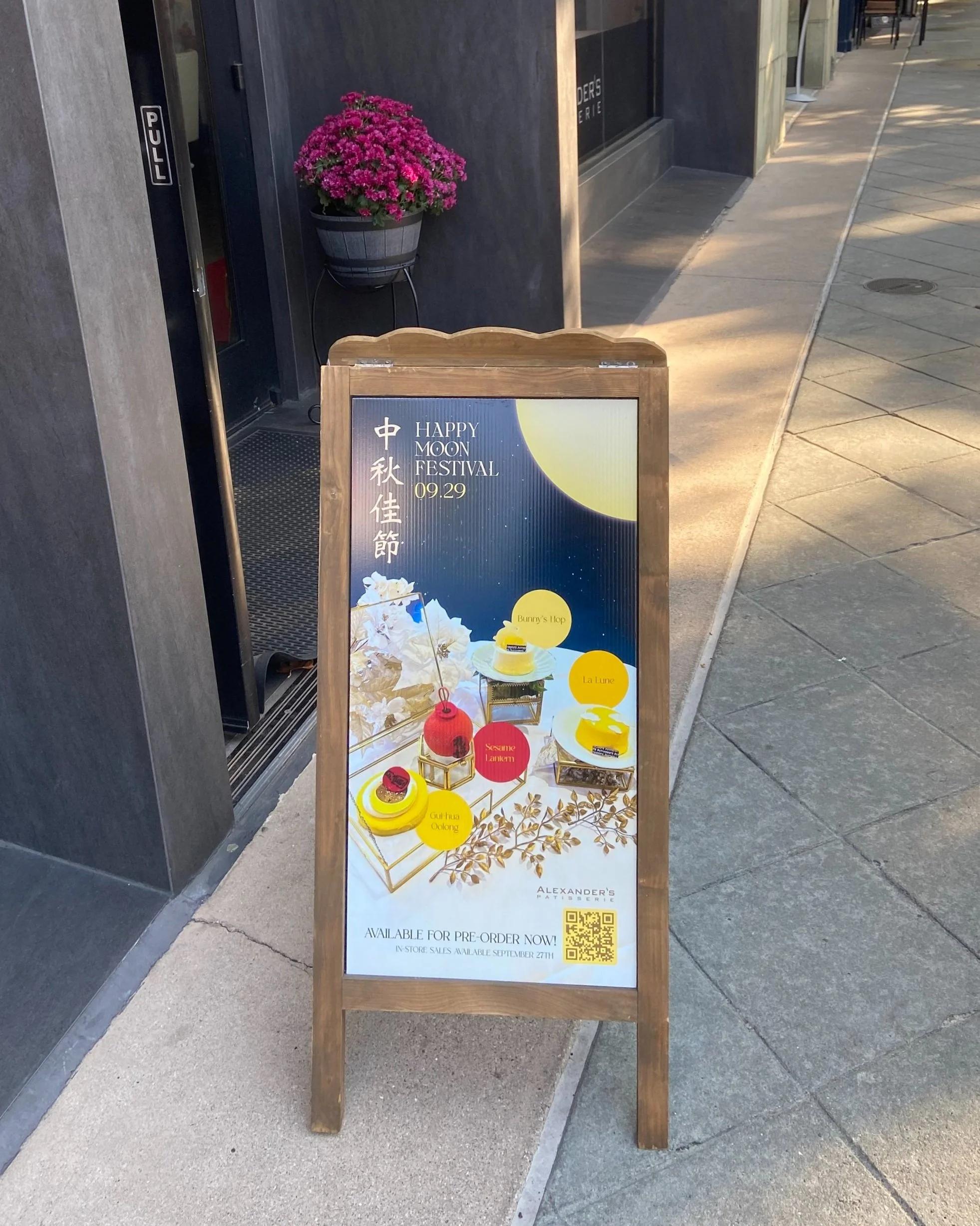 Description — A poster designed to advertise Alexander’s Patisserie's new cakes for the moon festival in some Asian cultures — such as China, South Korea, Japan, and even more countries around East Asia. The poster highlights four new cakes: Bunny’s Hop, La Lune, Sesame Lantern, and Gui-hua Oolong. Inspiration from the poster came from real-life experiences of people who celebrate the Moon Festival, gathering under the night sky, and offering food in honor of the moon. Using these ideas with the help of Alexander’s Patisserie’s general manager and head chef, I was able to convey the emotions of a night under the moonlit sky perfectly.